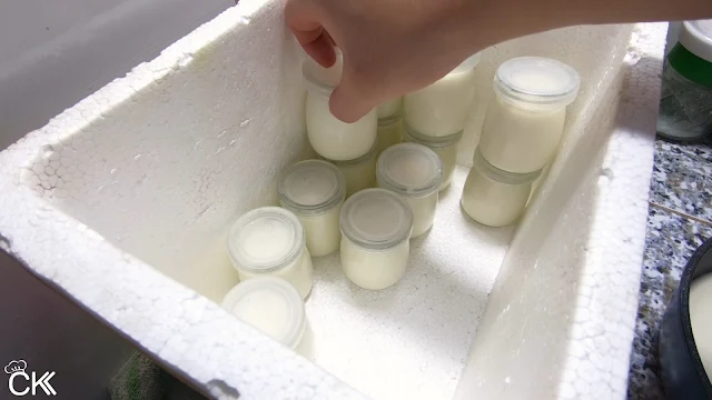 - Khi xếp các hủ sữa chua phô mai vào trong thùng xốp, bạn nên xếp sát nhau, hủ này chồng lên hủ kia. Nắp thùng xốp phải đậy thật kín, tốt nhất nên phủ khăn và dùng vật nặng đè lên nắp để hơi ấm không bay ra ngoài.